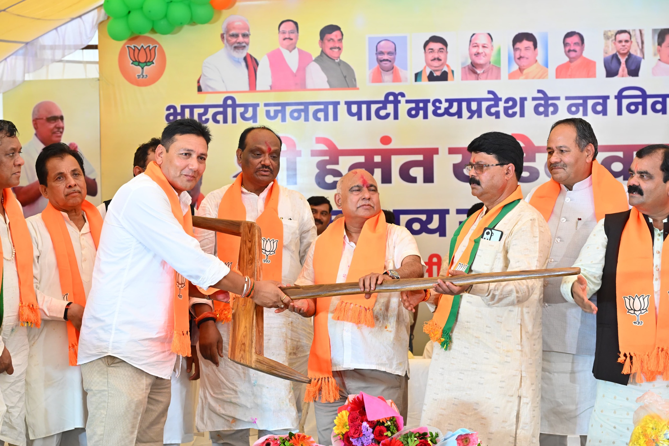 Bharatiya Janata Party state president and MLA Shri Hemant Khandelwal and Union Minister Shri Durgadas Uike addressed the felicitation ceremony held at the Betul district office.