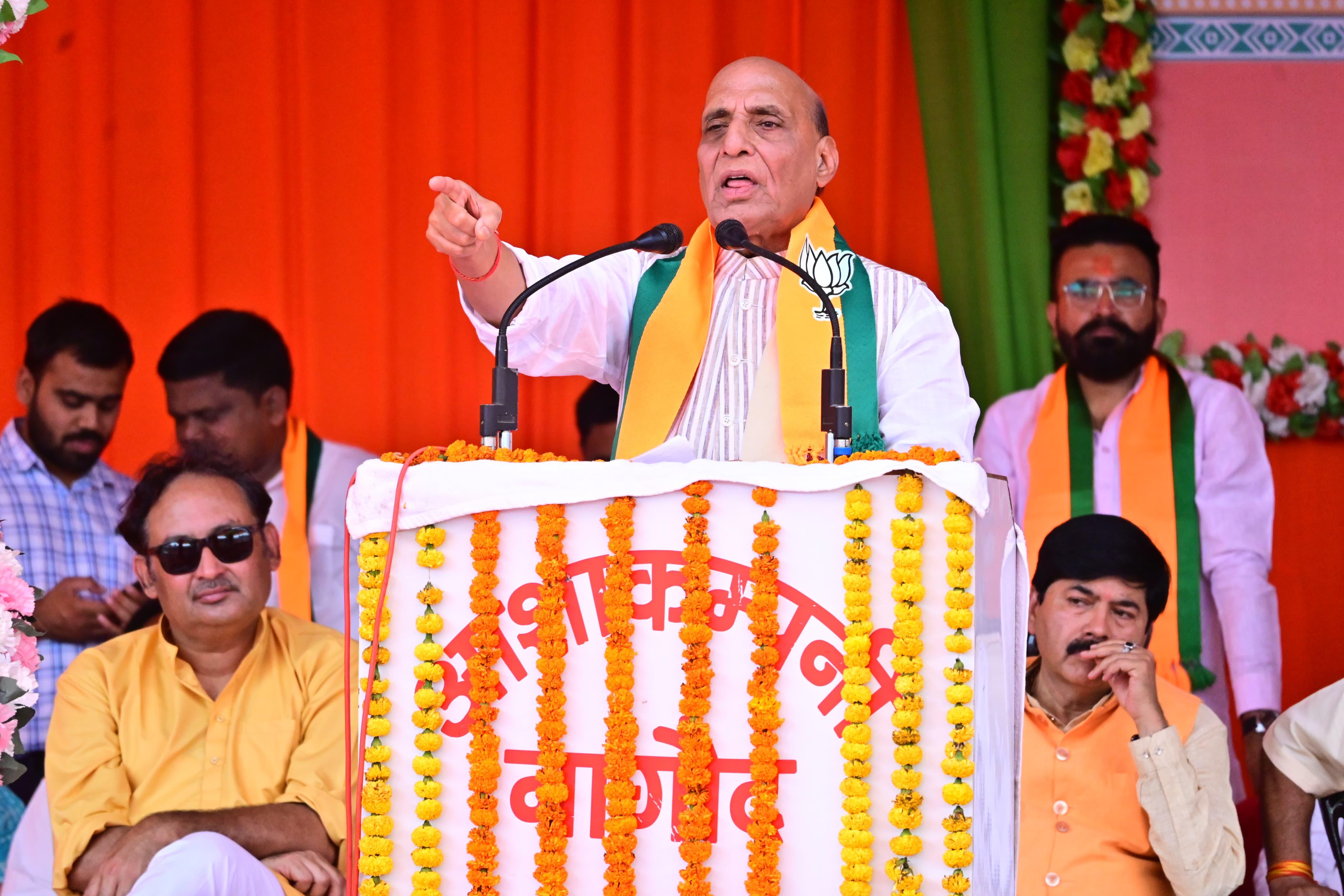Union Defence Minister Shri Rajnath Singh addressed public meetings in Rewa and Satna in Madhya Pradesh.